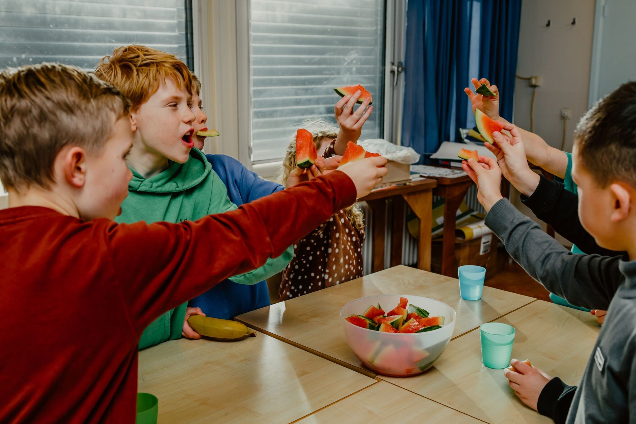 Aan collega‑brugfunctionarissen geeft Fenija een paar duidelijke tips mee: “Zorg dat gezonde voeding binnen de school structureel georganiseerd is, zorg dat je de randzaken op orde hebt én zorg voor voldoende snij-materiaal. Dat maakt het voor iedereen makkelijker.”