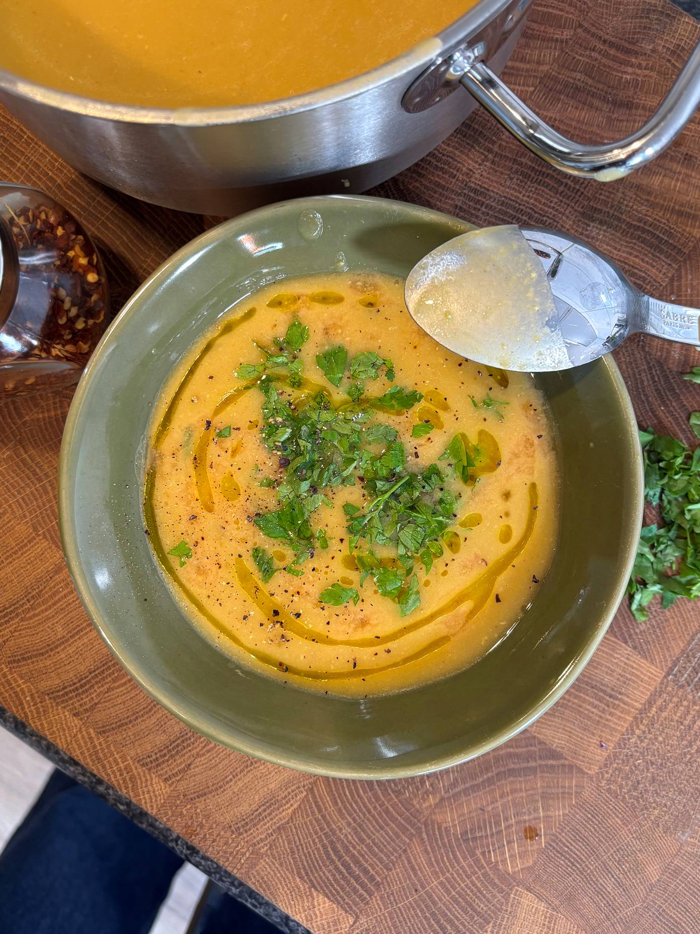 Breng aan de kook en laat 30 minuten zachtjes koken tot de linzen en aardappels zacht zijn.